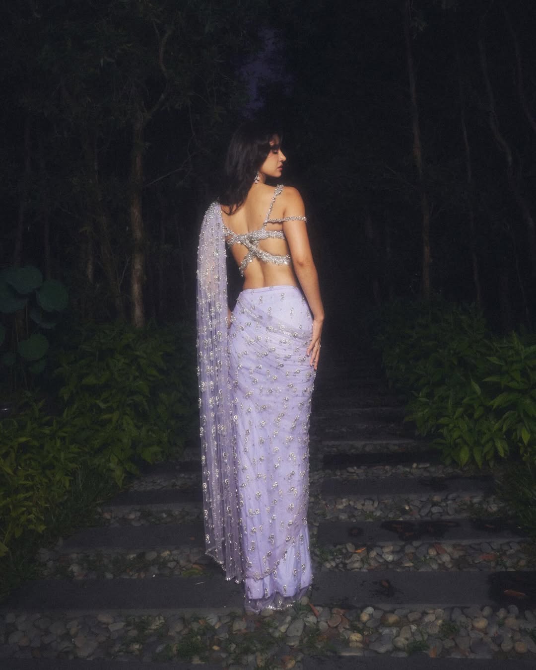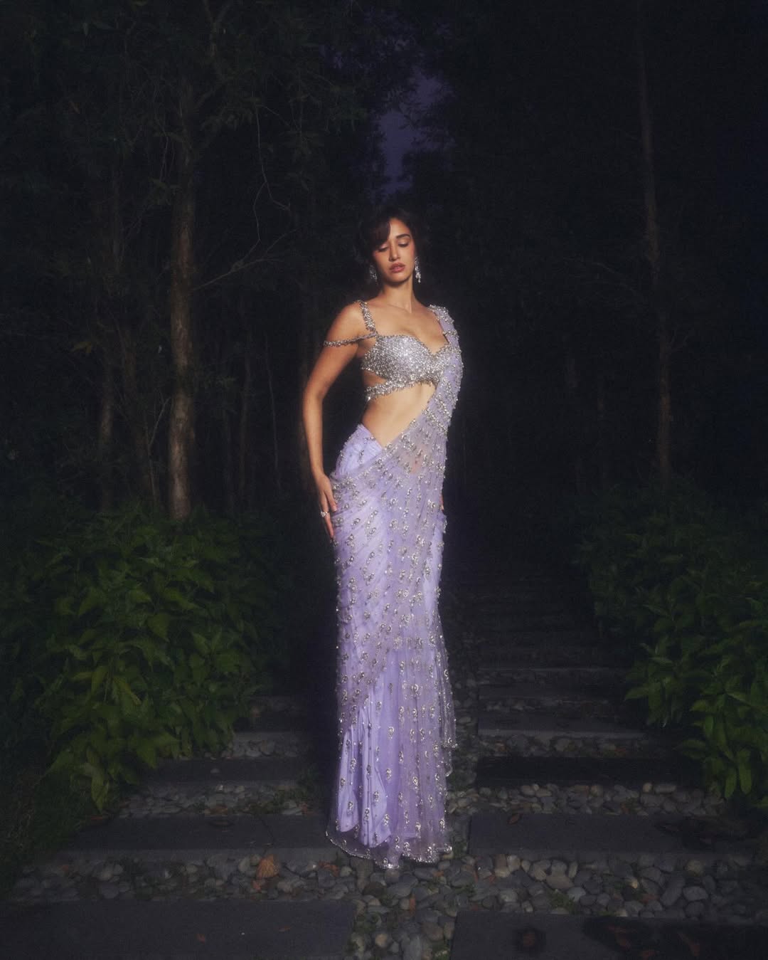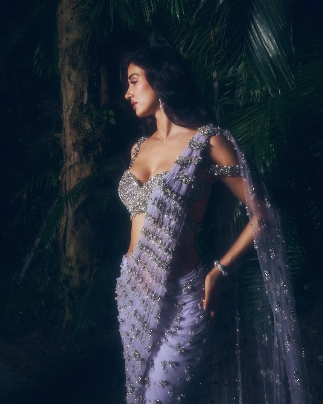 బాలీవుడ్ అందాల నటి దిశా పటానీ డిసెంబర్ 2025లో సోషల్ మీడియాలో షేర్ చేసిన తన లుక్తో అభిమానులను మంత్రముగ్ధులుగా చేసింది. లావెండర్ జార్జెట్-నెట్ సారీలో ఆమె అందం ఒక కలలా కనిపిస్తుంది. సిల్వర్, డైమండ్ లాంటి మిన్నైన అలంకరణలు సారీకి అదనపు మెరుపు చేర్పించాయి.