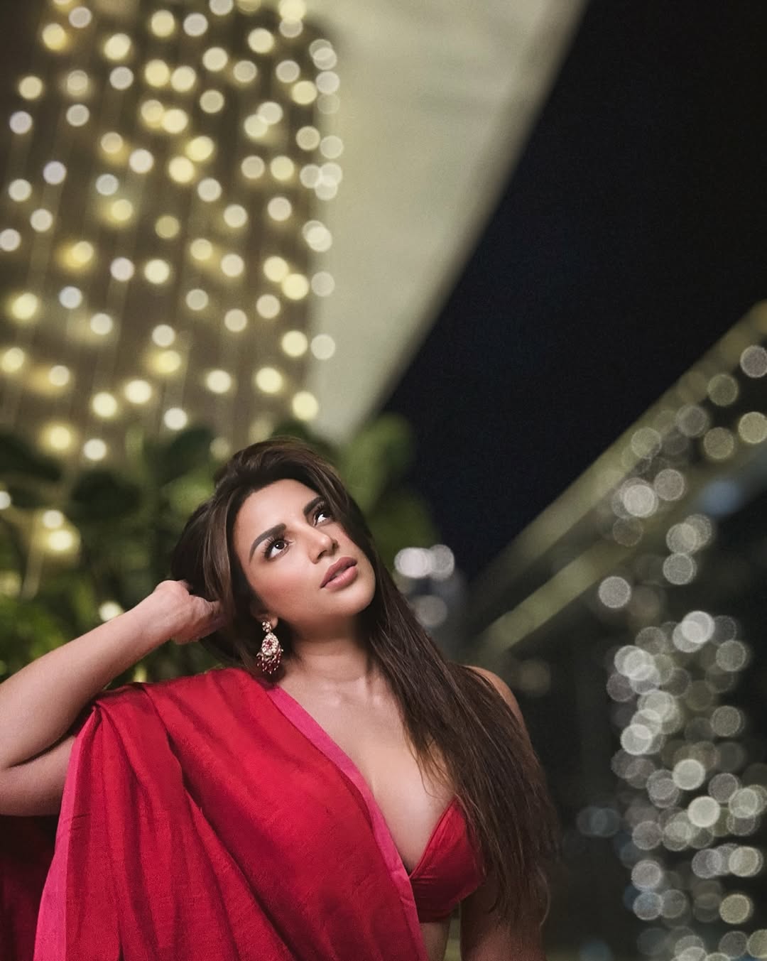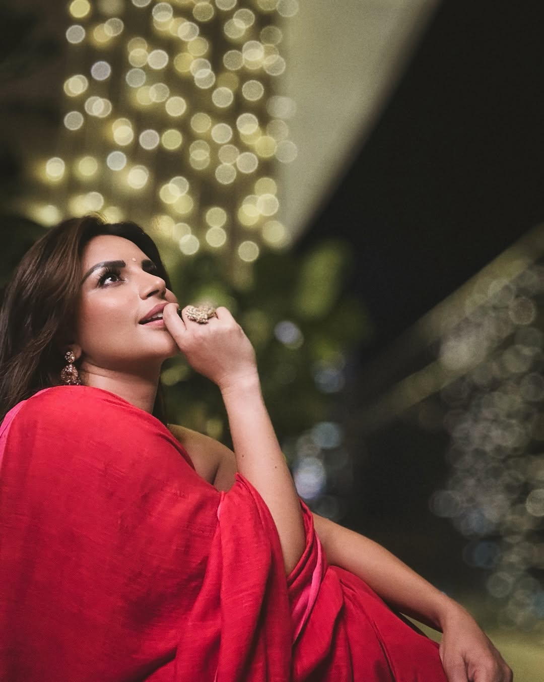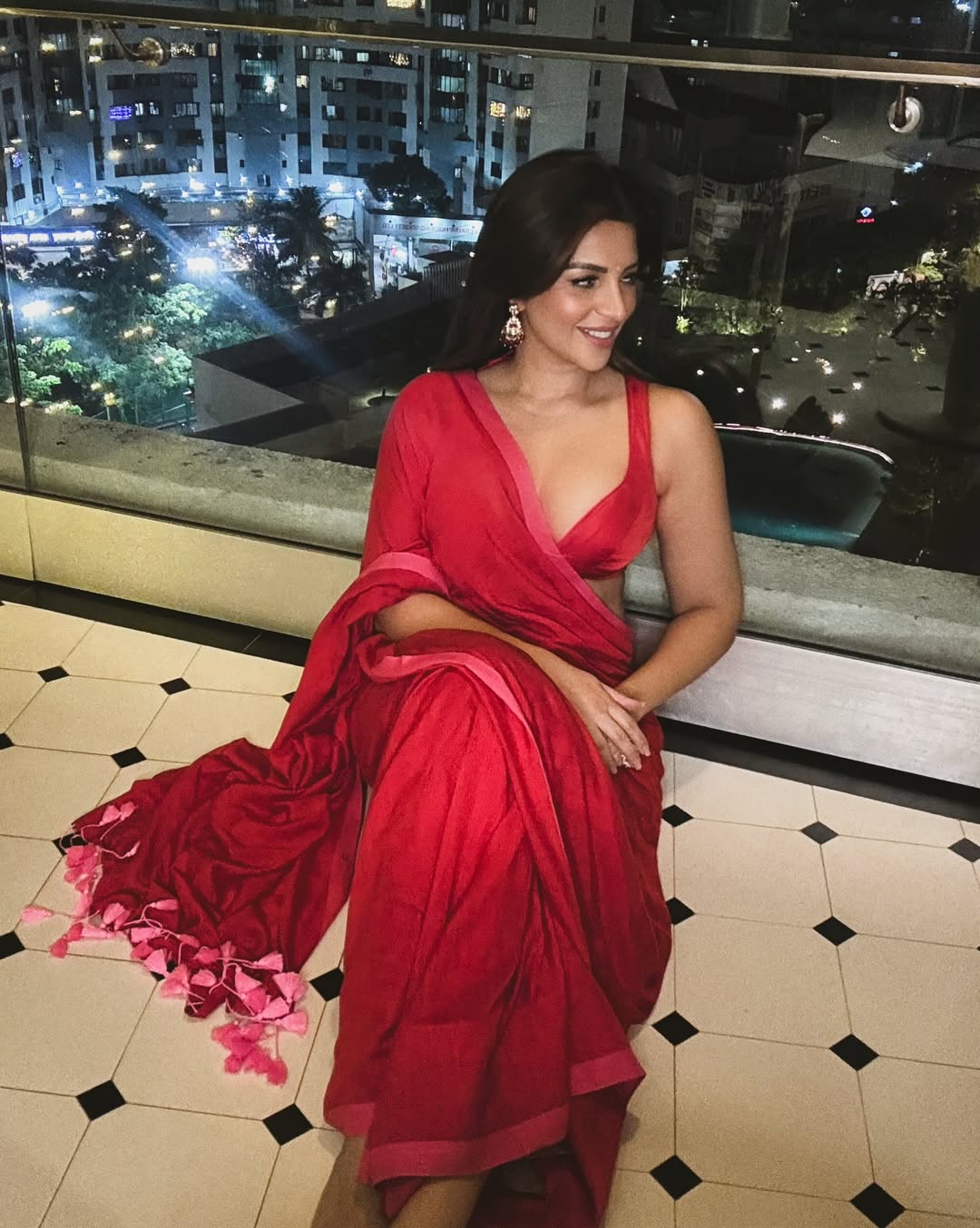 బాలీవుడ్ నటుడు శమా సికిందర్ తన ఎరుపు సారి లుక్ను ఇన్స్టాగ్రామ్లో షేర్ చేసి అభిమానుల హృదయాలను గెలిచారు. రాత్రి నగర దీపాల మధ్య బాల్కనీలో తీసిన ఫోటో ఒక కల లాంటి అందాన్ని చూపిస్తుంది. “Kya kal kisne is saal ka sabse bada chaand dekha???” అనే ఆమె హాస్యమైన క్యాప్షన్ కూడా వైరల్ అయ్యింది.